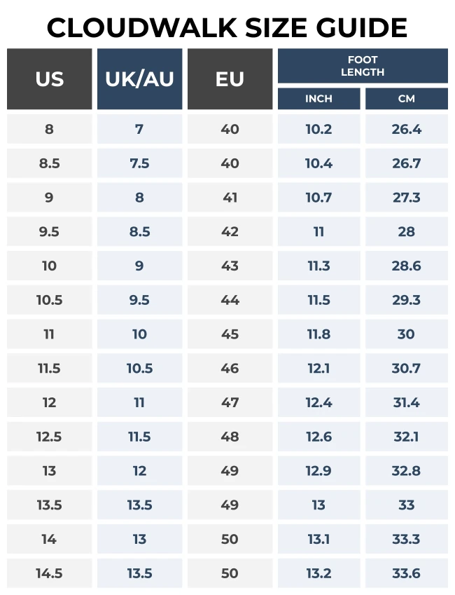 CloudWalk Size Guide